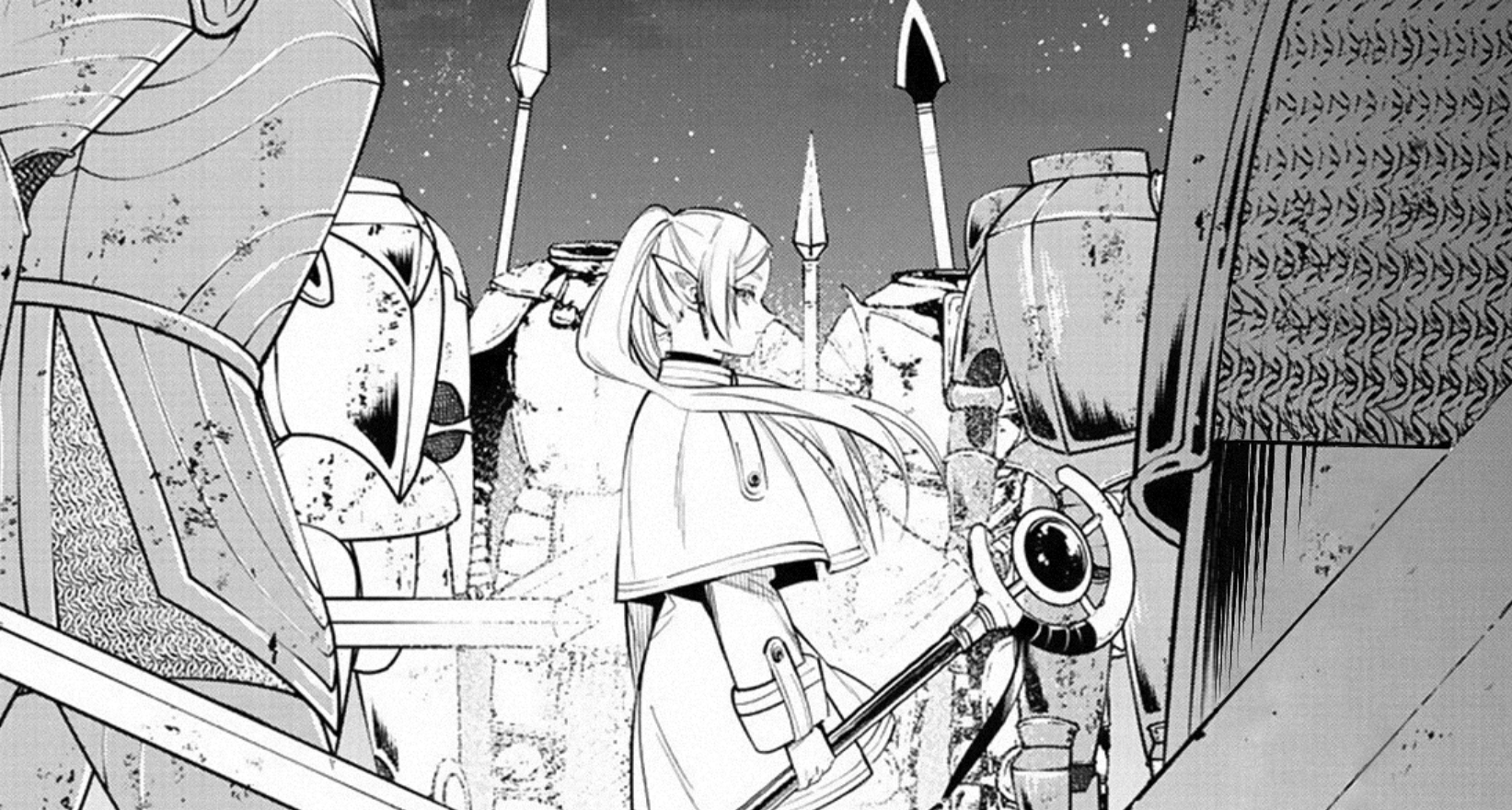 As the years pass, Frieren is eventually tasked with taking on the dying Heiter’s student Fern and Eisen’s former student Stark.