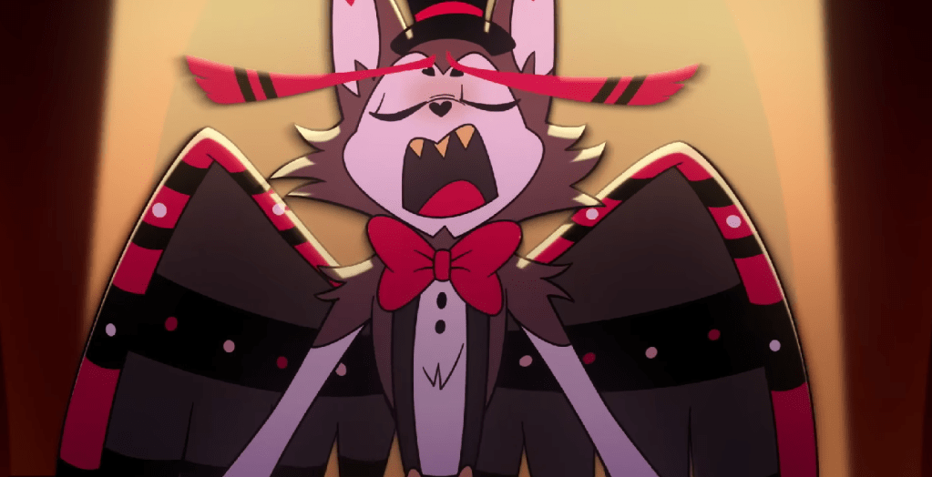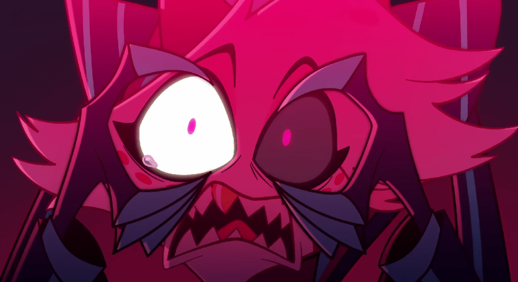 This ends with the funniest moment in all of Hazbin Hotel for me, when Valentino storms off while speaking in Spanish, Vox makes a racist remark, and Valentino responds, “I’m from fucking Flordia!” and then decks Vox in the face with a glass.