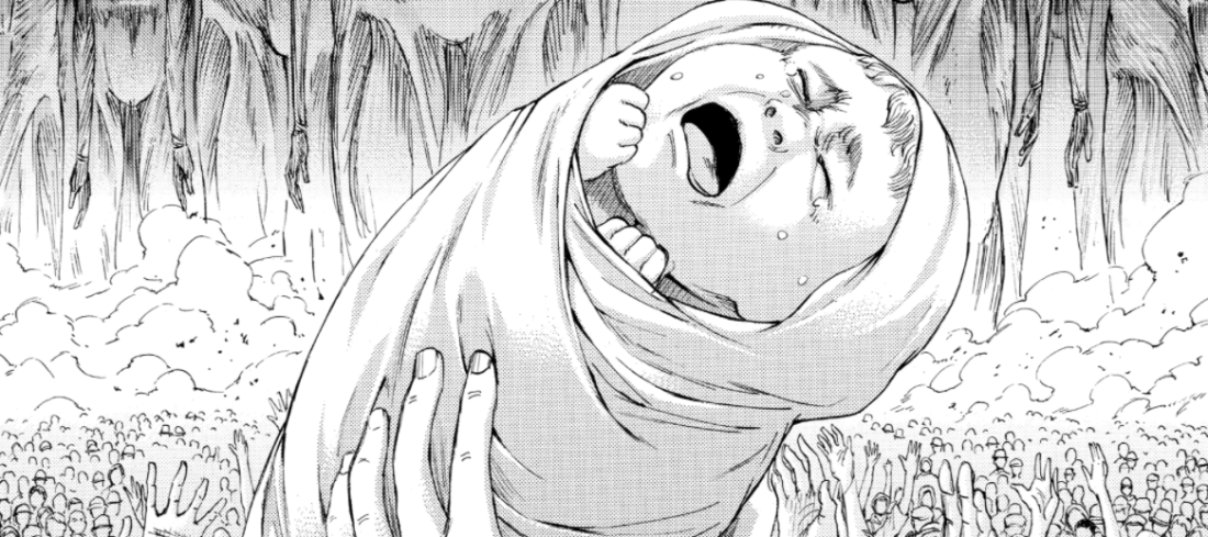 The true star of this chapter for me though was surprisingly not Eren, Levi or the unnamed, bearded general who gave the brilliant speech, but Onyankopon.