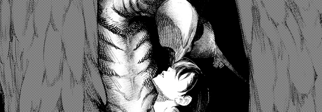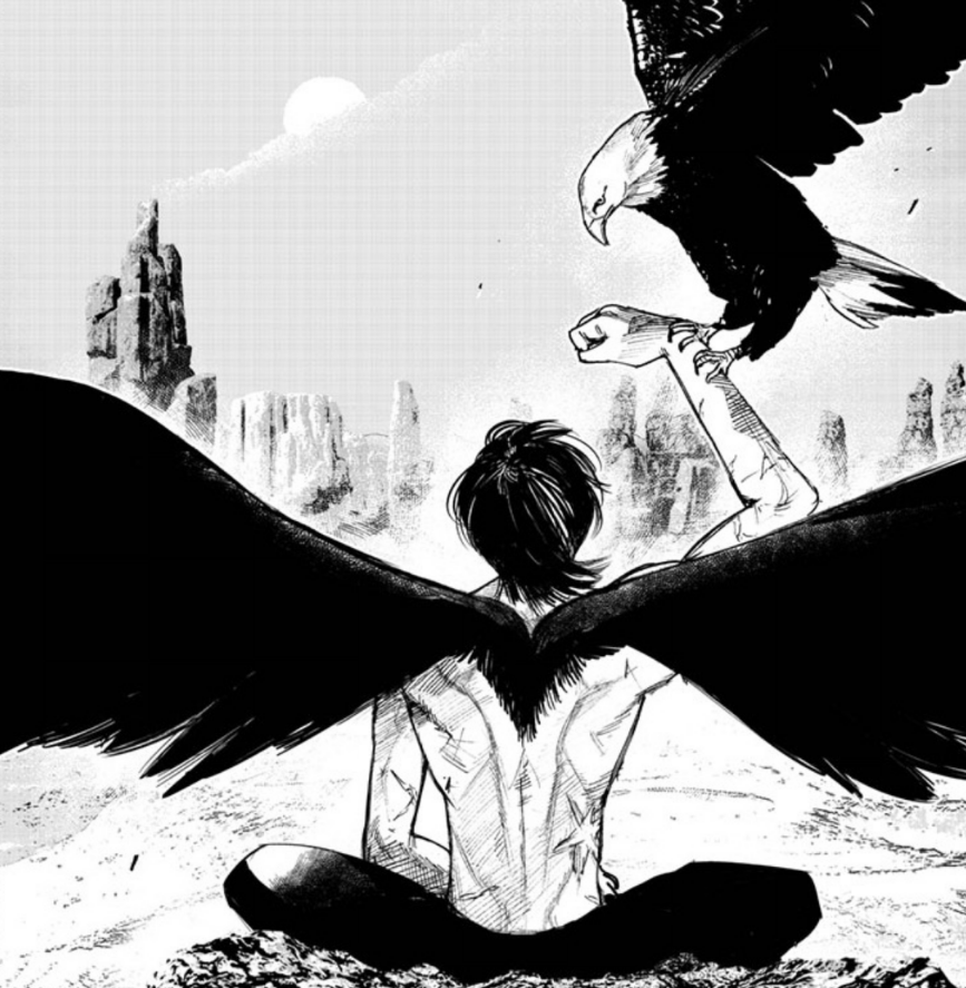 Speaking of, the story begins with an eerie panel, which was teased by Ishida (seen above), which shows our main character, 16-year-old Tokio Kurohara, standing naked and rising to meet the gaze of a vulture-like creature with the narration, “It’s something of an affliction.”